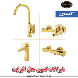 ست کامل شیرآلات کسری مدل هیرمند در سه رنگ طلایی، کروم و سفید طلایی موجود است.